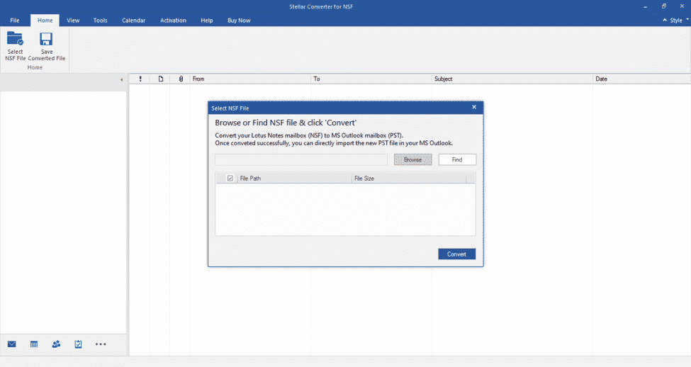 Once the installation is complete, launch the Stellar Converter for NSF tool. You will see a window ‘Select NSF File’ on the home screen.