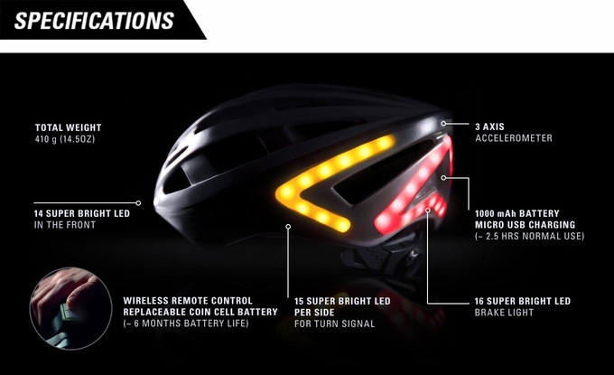Integrating brake and turn signal lights, Lumos effectively transforms your head into a system of alerting vehicles when you are breaking, and in which direction you are turning. It does this through a wireless remote you activate, which then triggers the turn or break signals to begin flashing on the helmet.