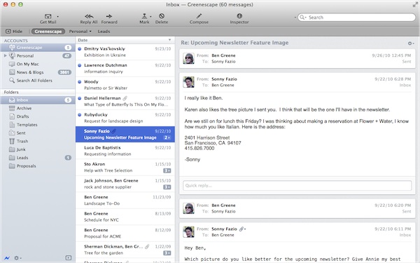 In fact, it’s quite good. But it lacks some things like it has no rules or smart folders that learn from example, flexible message templates and truly free-form labeling, very few criterion in smart folders to name a few. If you’ve going to use an email client for your Mac, you have got to use one of those listed below.