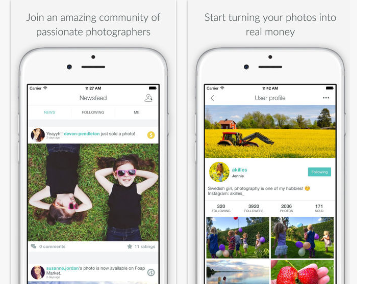 Foap is an app similar to Instagram but different in the way that you have the opportunity to sell your photos.